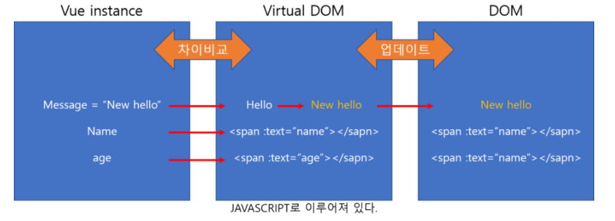 - 이러한 프레임워크들은 화면에 변화가 있을 때마다 실시간으로 돔 트리를 수정하지 않고 변경사항이 모두 반영된 가상 돔을 만들어 낸다.