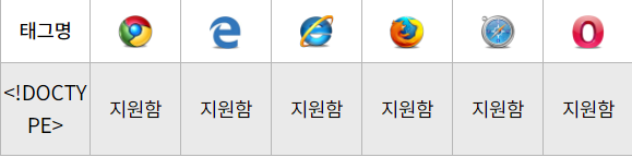 - HTML이 어떤 버전으로 작성되었는지 미리 선언하여 웹 브라우저가 내용을 올바로 표시할 수 있도록 해주는 것