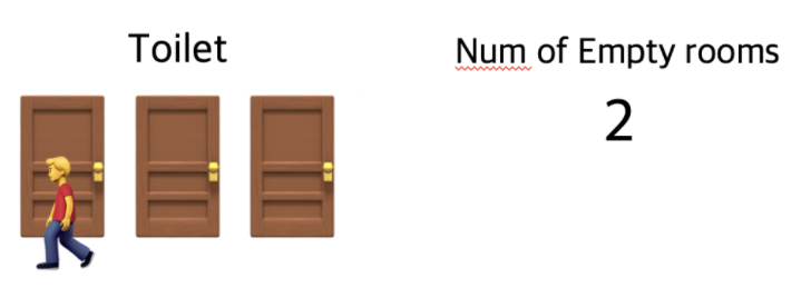 - 만약 당신이 화장실에 가고 싶다면 전광판에서 빈 칸의 개수를 확인하고 빈칸이 1개 이상일면 빈 칸의 개수를 하나 줄이고 화장실로 입장해야 한다.