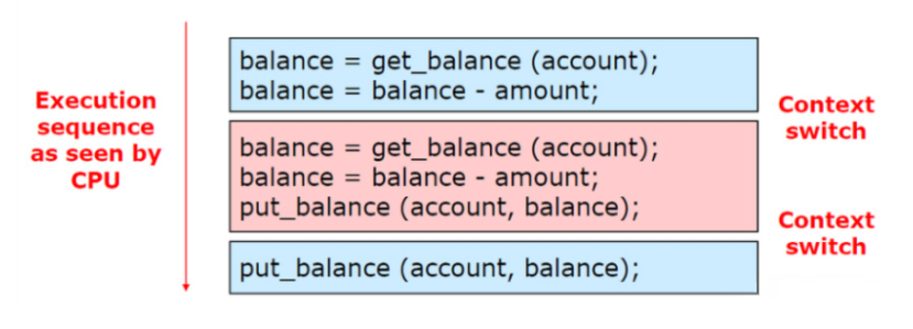 위 그림처럼 파란색과 빨간색이 동시에 balance라는 공통변수에 접근한다면 문제가 생기게 된다.
