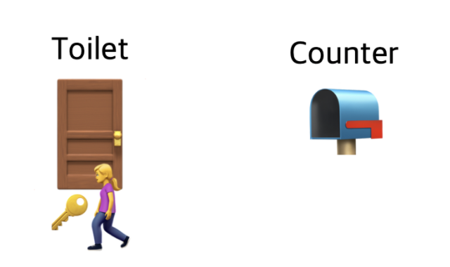 - 만약 당신이 화장실을 가려고 하는데 카운터에 키가 있으면 화장실에 사람이 없다는 뜻이기 때문에 바로 화장실로 갈 수 있다.