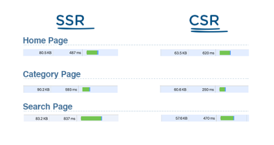 다음은 SSR과 CSR로 렌더링 된 walmart.com 페이지에 대한 정보이다.
