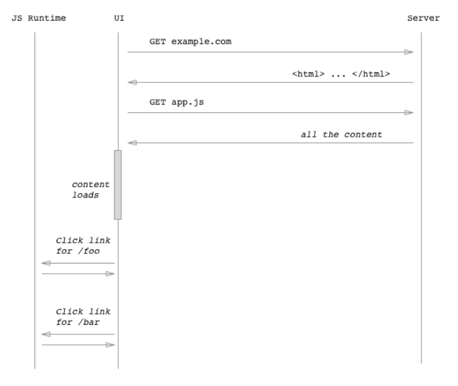 하나의 HTML 파일을 기반으로 자바스크립트를 이용해 동적으로 화면의 컨텐츠를 바꾸는 방식