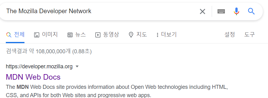 구글에 The Mozilla Deveopler Network를 검색해보면 위의 사이트가 바로 나오는것을 확인할 수 있다!